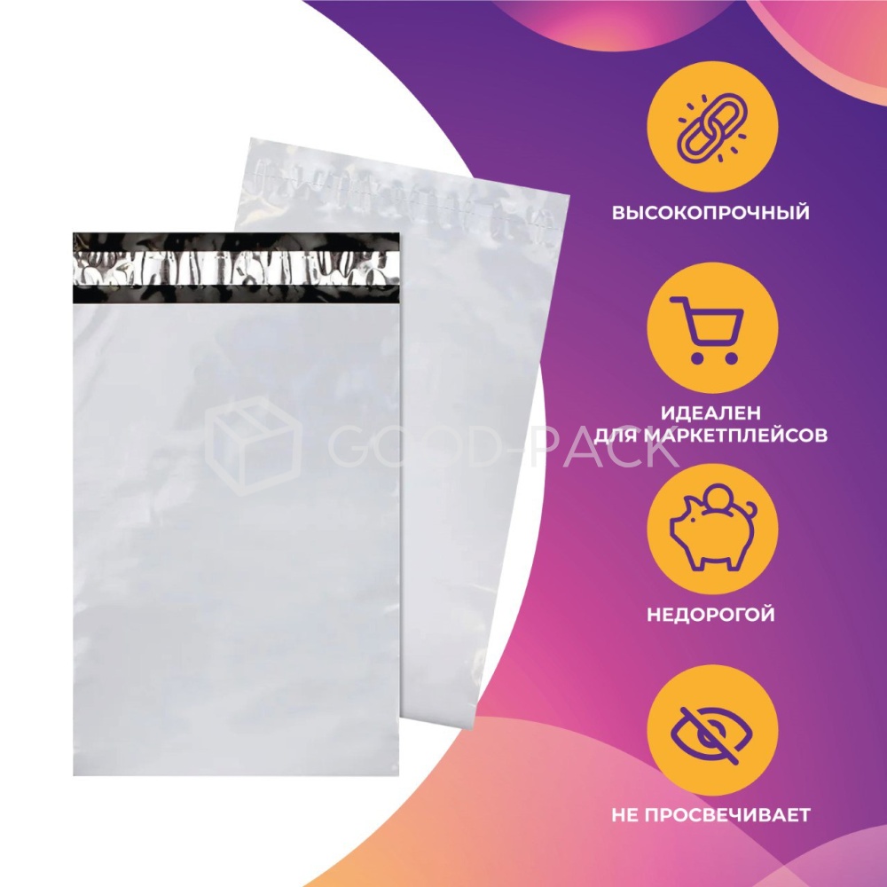 Курьер-пакет белый без печати, без кармана, 300x400+40 мм, 50 мкм, 1 шт.